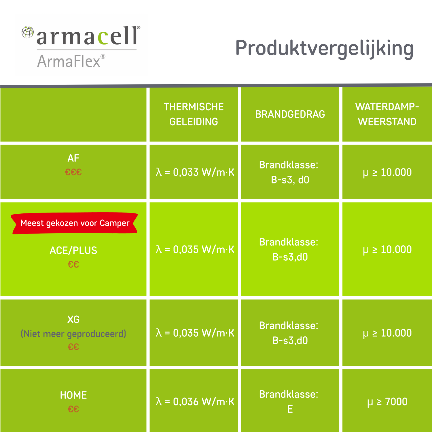Armaflex Productvergelijking